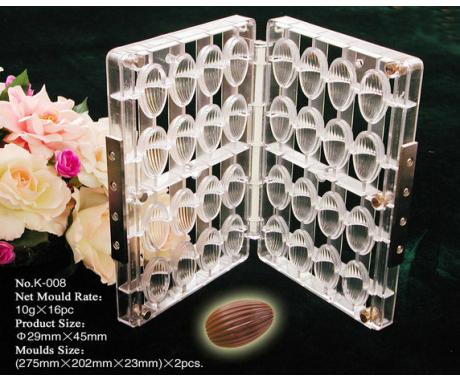 PC系列巧克力印模系熱固塑型工藝生產的產品,具有表面光澤,抗沖耐溫性能良好,產品在外界-10℃~100℃溫差范疇內,保證產品品質不變