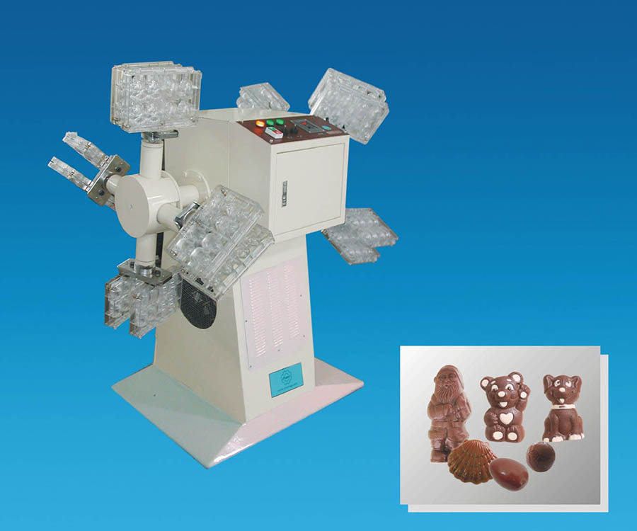 ●ZKⅡ型中空巧克力成型機配置專用PC中空巧克力模具,是依據巧克力工藝特性及在公轉與自轉狀態下,物料呈離心力流向的原理而設計,在設備旋轉工作狀態下,完成中空巧克力制品成型工序,其造型新穎、形態可愛的立體空心巧克力成品,具有頗高的藝術欣賞價值及商品的經濟附加值。