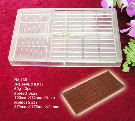 PC系列巧克力印模系熱固塑型工藝生產的產品,具有表面光澤,抗沖耐溫性能良好,產品在外界-10℃~100℃溫差范疇內,保證產品品質不變