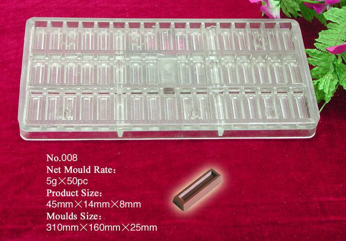 PC系列巧克力印模系熱固塑型工藝生產的產品,具有表面光澤,抗沖耐溫性能良好,產品在外界-10℃~100℃溫差范疇內,保證產品品質不變